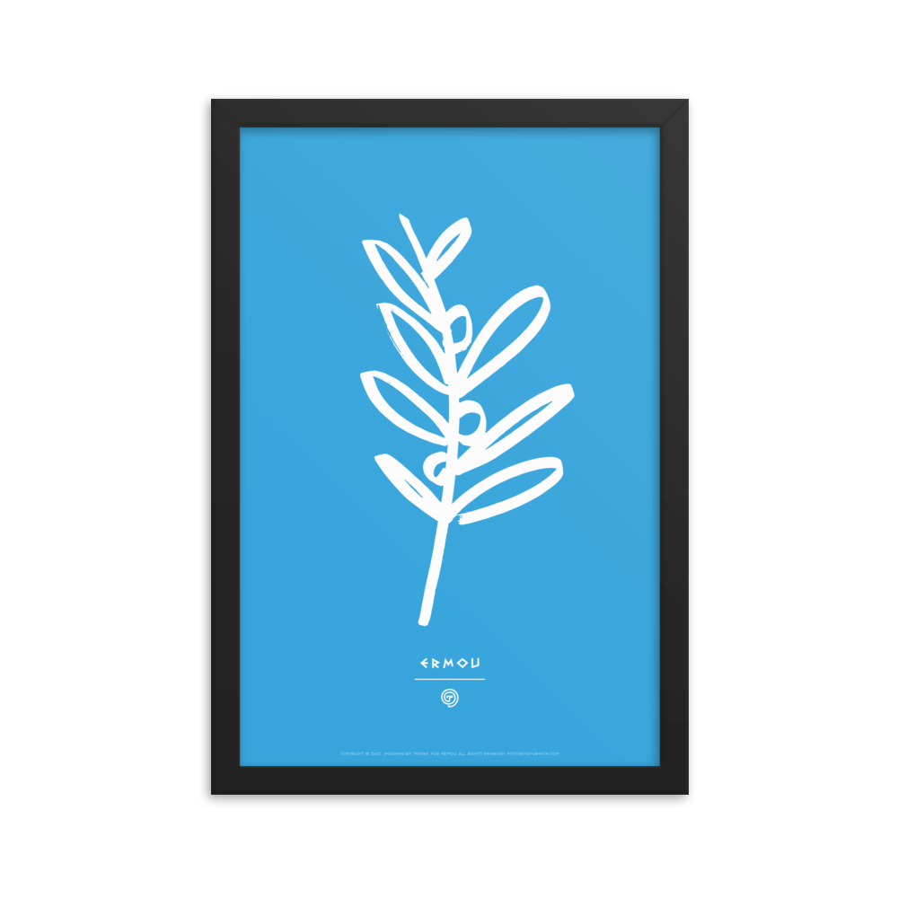 OLIVE BRANCH Framed Poster (White/Cyan)